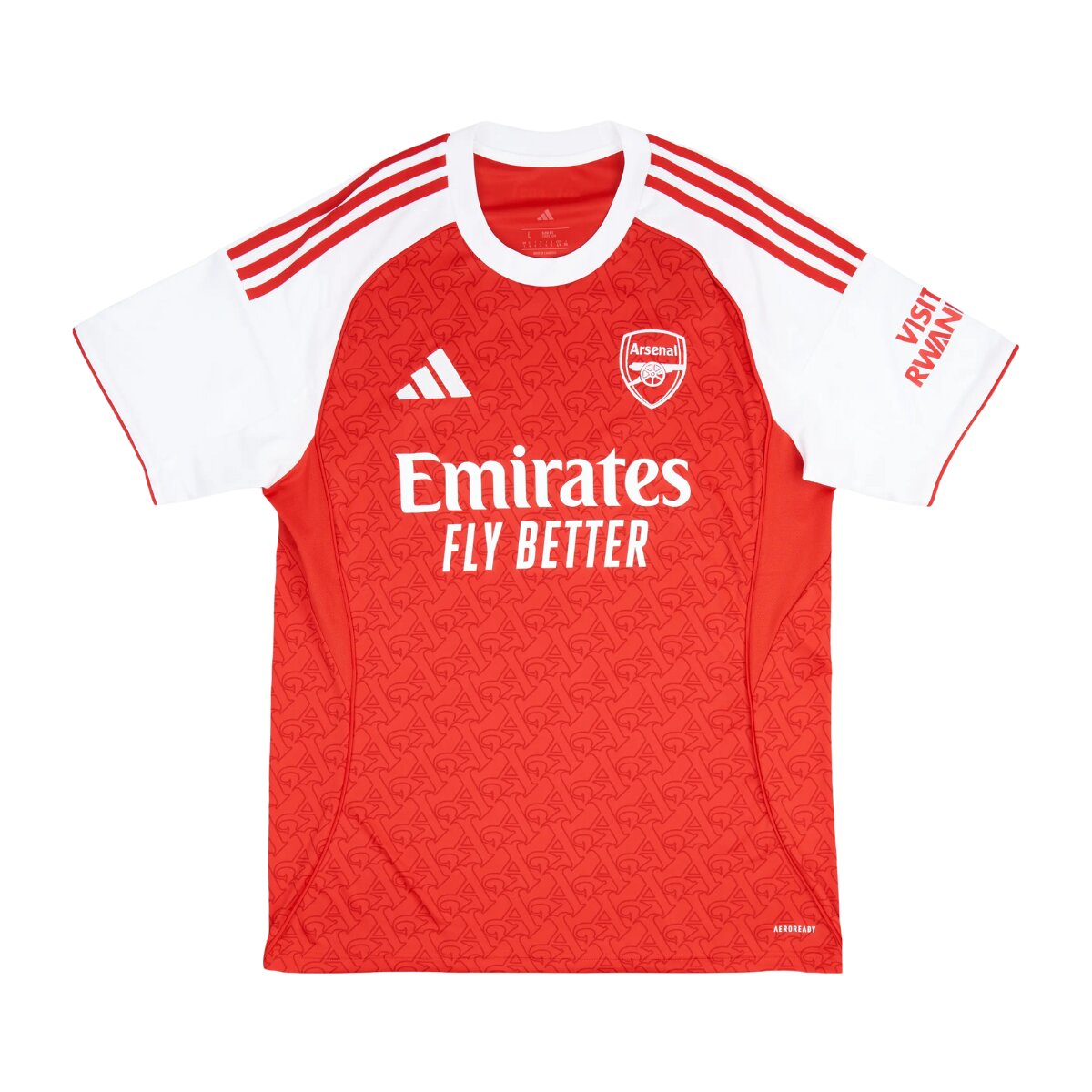 A camisa titular do Arsenal 2025-2026 mantém o clássico visual com o corpo vermelho e as mangas brancas, mas agora ganha um ar mais sofisticado e emblemático. O “A” estilizado aparece repetidamente ao longo do manto, em uma aplicação sutil que homenageia o lema “Victoria Concordia Crescit”. O detalhe gótico reforça a conexão com a identidade do clube sem abrir mão do estilo contemporâneo.