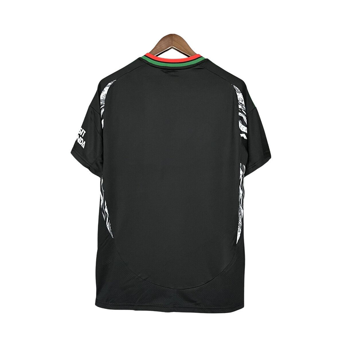 A RotaSports apresenta a camisa reserva do Arsenal 24/25 é mais do que um uniforme: é uma declaração de orgulho cultural e histórico. Com um design impactante que mistura tradição e modernidade, o manto celebra a conexão entre o clube, sua base de torcedores e a herança africana em Londres. A base preta ganha vida com elementos em vermelho e verde, cores que representam as tradições pan-africanas. Um design moderno no colarinho combina o vermelho, o verde e um friso preto, criando um contraste elegante. Os ombros apresentam listras que alternam verde e vermelho, reforçando o conceito de união e diversidade. O símbolo icônico do Arsenal, aplicado em vermelho, traz um toque clássico e emocional. Inspirados na rica herança africana, os padrões em preto e branco foram criados por Foday Dumbuya, fundador da Labrum London. Uma homenagem visual à diáspora africana em Londres. A Adidas aparece em verde, enquanto os patrocinadores são aplicados em branco, garantindo harmonia no design.
