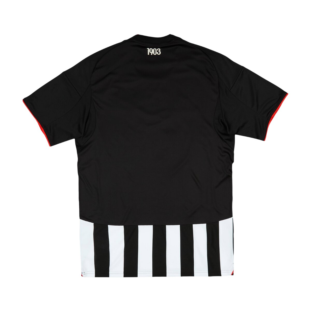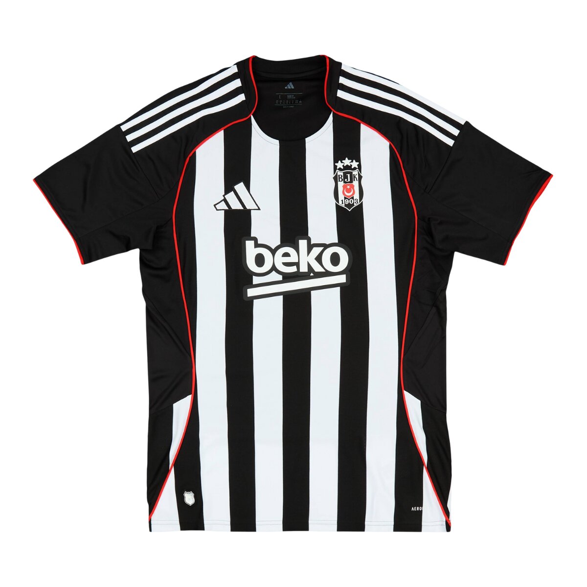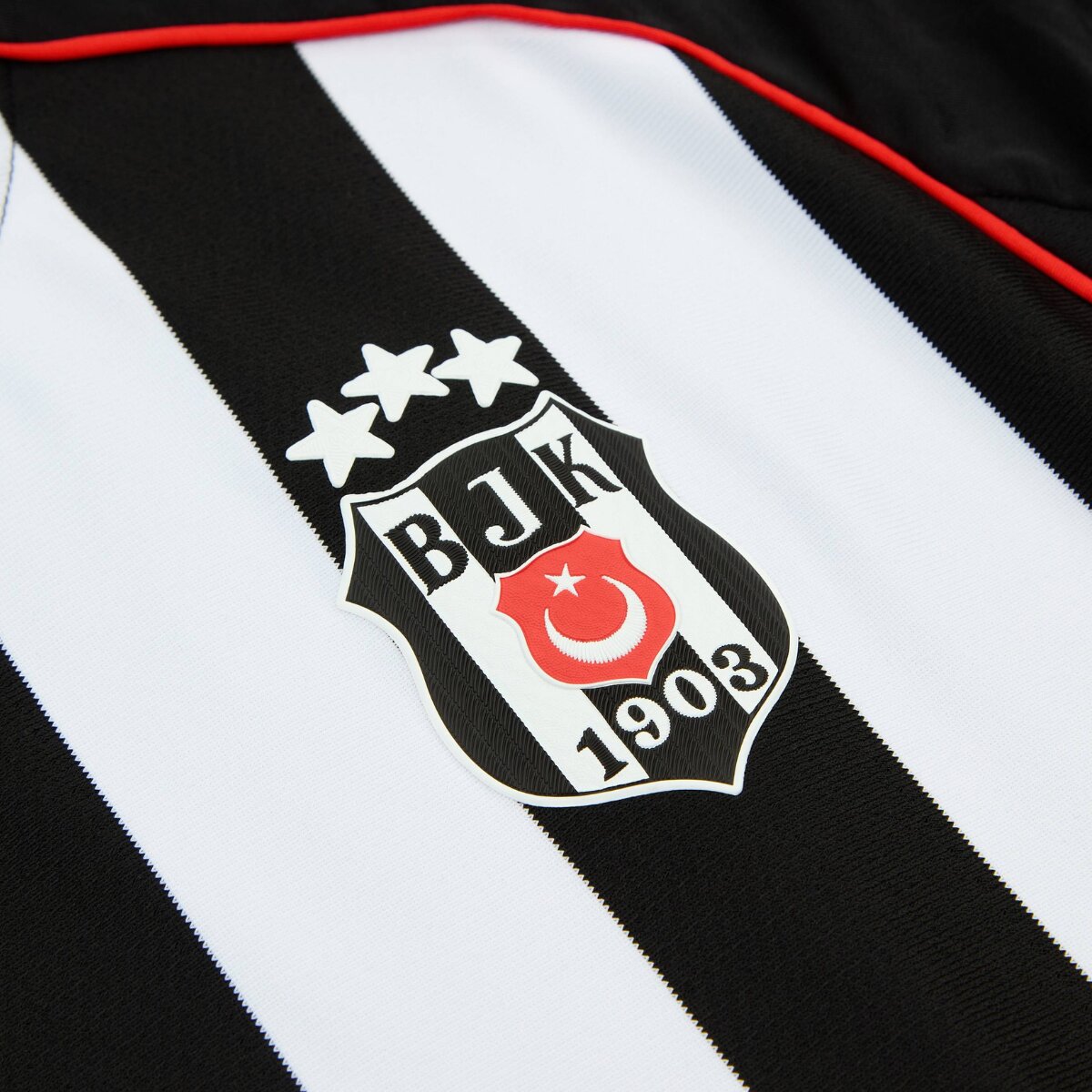 Nas mangas, as tradicionais três listras brancas completam o design, equilibrando modernidade e respeito às origens. O escudo do Besiktas, aplicado no peito esquerdo, carrega toda a imponência e tradição do clube turco.