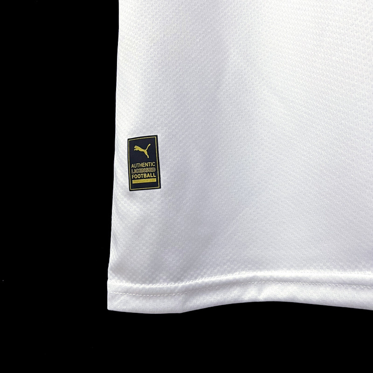 Apresentamos com entusiasmo o Manto Reserva da Costa do Marfim, uma verdadeira obra-prima que celebra a tradição e a ousadia no universo do futebol. Predominantemente branco, nosso jersey reserva destaca-se pela simplicidade sofisticada. A caixa laranja, característica dos modelos away da marca para seleções, adorna o corpo da camisa, transmitindo vibração e energia. Detalhes em laranja nos punhos e faixas na gola, esta última em um corte clássico e redondo, proporcionam um toque de estilo único. Dentro da caixa laranja, encontramos a sigla do país “CIV” em cinza, um elemento discreto que agrega personalidade. O logo completo da PUMA, no centro do peito, é uma declaração de qualidade e estilo incomparáveis. O escudo da Federação Marfinense, em sua versão atual padrão, com a bandeira do país ao lado direito, reflete a história e a glória do futebol marfinense. Ao lado esquerdo, orgulhosamente exibimos o apelido da equipe, os “Elefantes”, em uma fonte marcante que ecoa a força e a determinação. Seja parte dessa celebração adquirindo o Manto Reserva da Costa do Marfim. Vista-se com orgulho, viva o futebol em grande estilo!