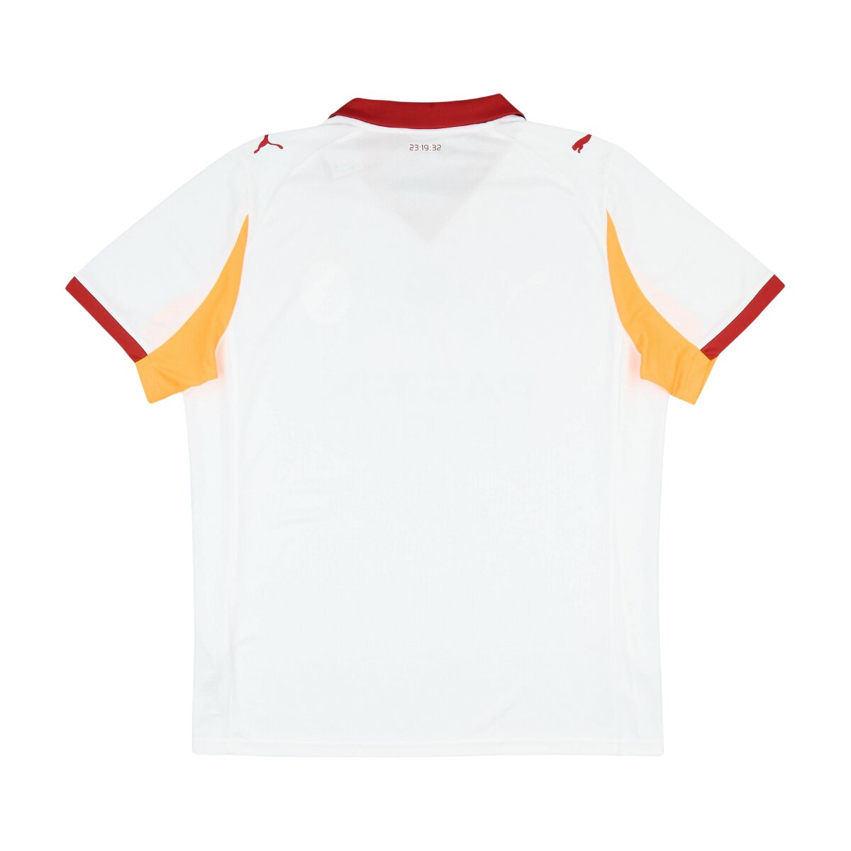 Com base branca impecável, o manto apresenta axilas em amarelo vibrante, em perfeita harmonia com os punhos e a gola polo na cor vermelha, que reforçam a tradicional identidade do clube turco. Na nuca, um detalhe exclusivo chama a atenção: o horário exato do pênalti decisivo, gravado para sempre como símbolo da vitória e da paixão da torcida.