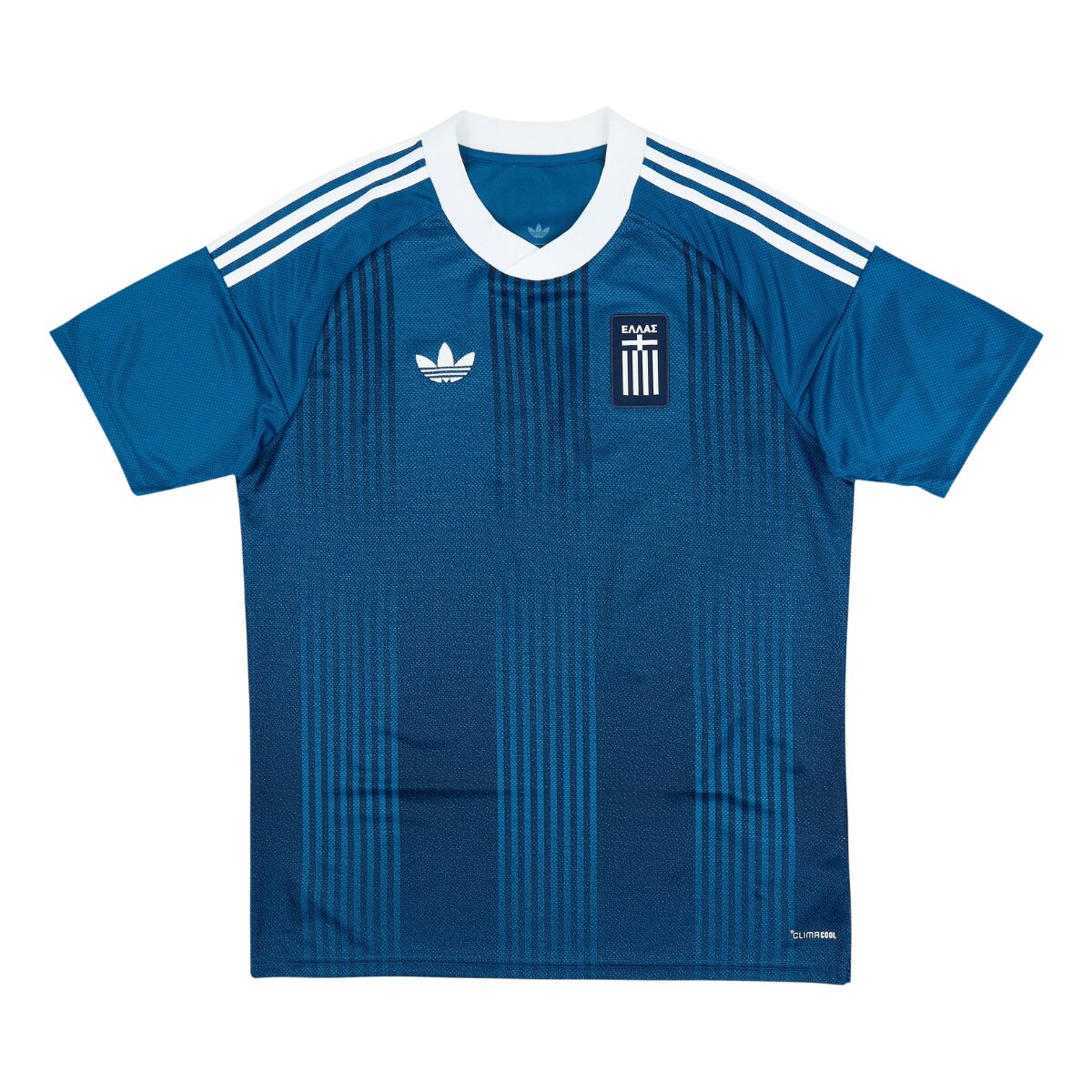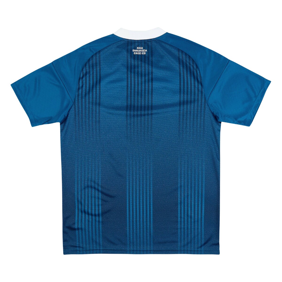 A base azul predominante reforça o estilo clássico da equipe, destacando a camisa reserva Grécia 26/27 como uma opção versátil e elegante para diferentes ocasiões. O tecido recebe um padrão visual discreto inspirado na cultura e na arquitetura grega, criando textura e profundidade sem comprometer a proposta minimalista do uniforme.