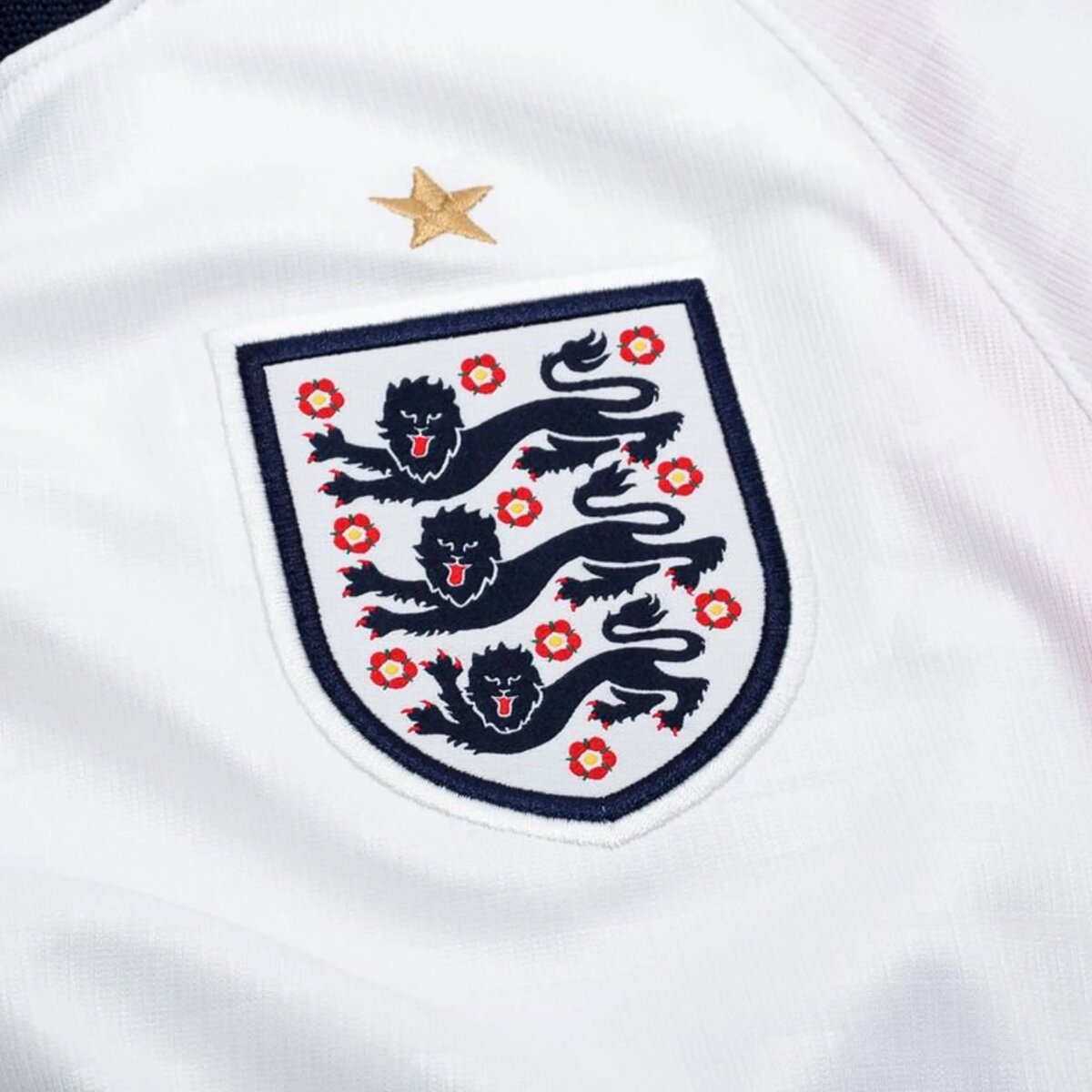 O escudo com os tradicionais Três Leões aparece em destaque no peito, carregando todo o peso de uma história que começa muito antes da primeira Copa do Mundo. A Inglaterra foi campeã mundial em 1966, em Wembley, diante de sua própria torcida. Aquele título foi o pico de uma trajetória que começou quando o futebol ainda era um esporte jovem e a Inglaterra era a grande referência mundial.