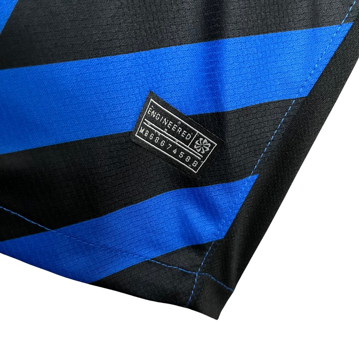 RotaSports apresenta a nova camisa titular da Inter de Milão 24/25 é mais que um uniforme. É uma homenagem à cidade que respira inovação e design. Inspirada na vanguarda de Milão, a camisa mantém as icônicas listras verticais do clube, mas com um toque moderno e arrojado, faixas diagonais que trazem movimento e energia ao lado esquerdo do peito. O escudo centralizado, agora com a segunda estrela dourada no topo, reflete a grandiosidade do clube. O Scudetto, símbolo do título italiano, aparece no peit. O novo patrocinador máster, Betsson Sport, complementa o design com elegância. A gola em V assimétrica é um detalhe que chama a atenção: azul no lado direito, preto no esquerdo, com um acabamento que exala exclusividade. As mangas seguem a combinação tradicional das listras, finalizadas com punhos pretos. E, como toque especial, a parte interna da gola revela uma serpente – símbolo da Inter – ao lado da bandeira de São Jorge, em referência ao brasão de Milão. Uma peça icônica para torcedores apaixonados que desejam carregar consigo a essência de um clube lendário e a modernidade de uma cidade incomparável.