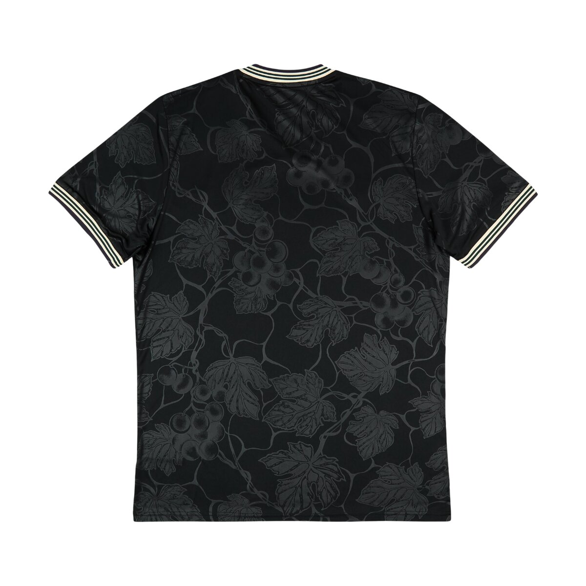 Com base preta refinada, o manto traz um grafismo elegante que mistura tons de preto, bordô e verde-escuro, evocando a coloração das uvas e o ambiente das colinas piemontesas. O resultado é uma camisa de visual sofisticado, feita para representar a essência da Velha Senhora tanto nos gramados quanto nas ruas.