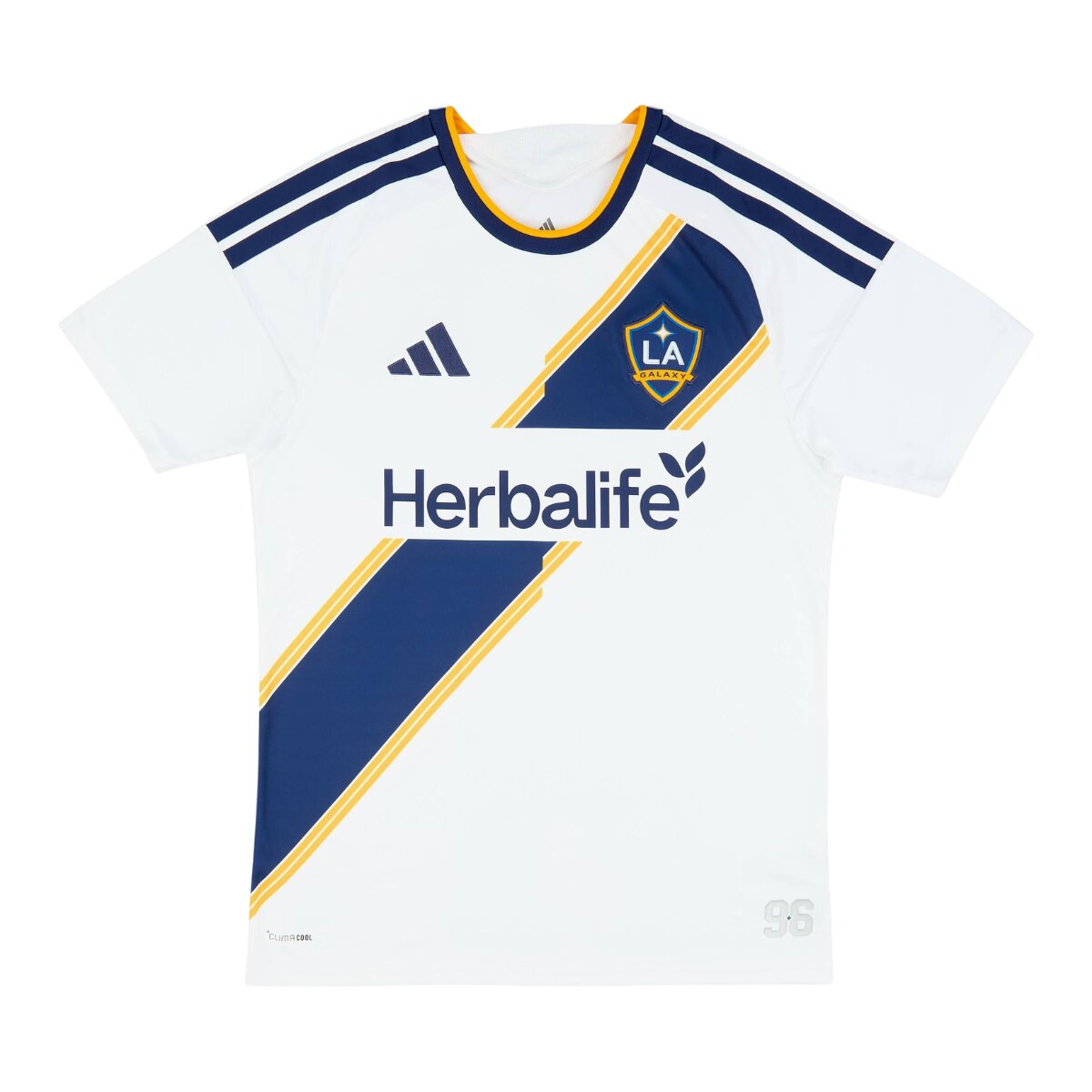 A base branca mantém a tradição visual da Camisa Home Los Angeles Galaxy, trazendo elegância e presença dentro e fora dos gramados. Os detalhes em azul marinho e amarelo complementam o uniforme e reforçam a identidade clássica do clube, criando um visual esportivo equilibrado e moderno.