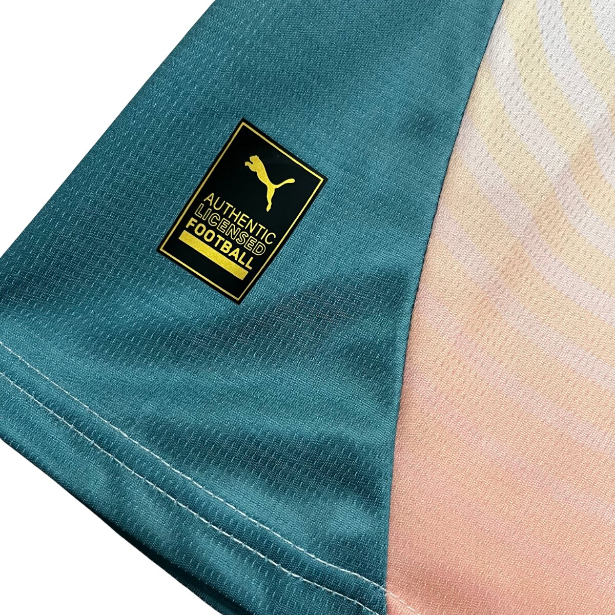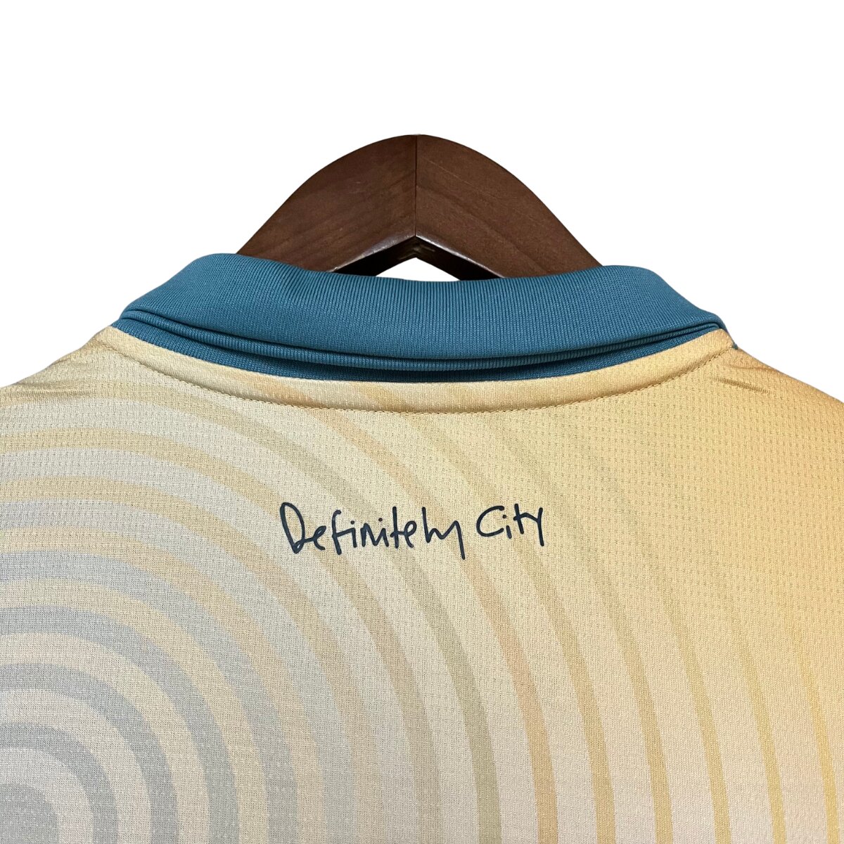 RotaSports apresenta a quarta camisa do Manchester City 24/25, uma homenagem vibrante à cultura e à música. Inspirada na icônica capa do álbum “Definitely Maybe”, esta edição especial captura a energia única do clube e de sua torcida com um design repleto de personalidade e história. Amarelo pálido como base, um tom moderno e ousado, que simboliza inovação e destaque, perfeito para quem quer se destacar nas arquibancadas ou nas ruas. Azul turquesa em testaque, a gola polo, mangas e laterais ganham toques em azul turquesa, criando um contraste elegante e vibrante. Escudo com design supersônico, o escudo do City, em amarelo com linhas azul-marinho, é complementado por círculos “supersônicos” que evocam velocidade e dinamismo. Assinatura “Definitely City”. Um toque especial na nuca que conecta a paixão pelo futebol à icônica cultura musical britânica.
