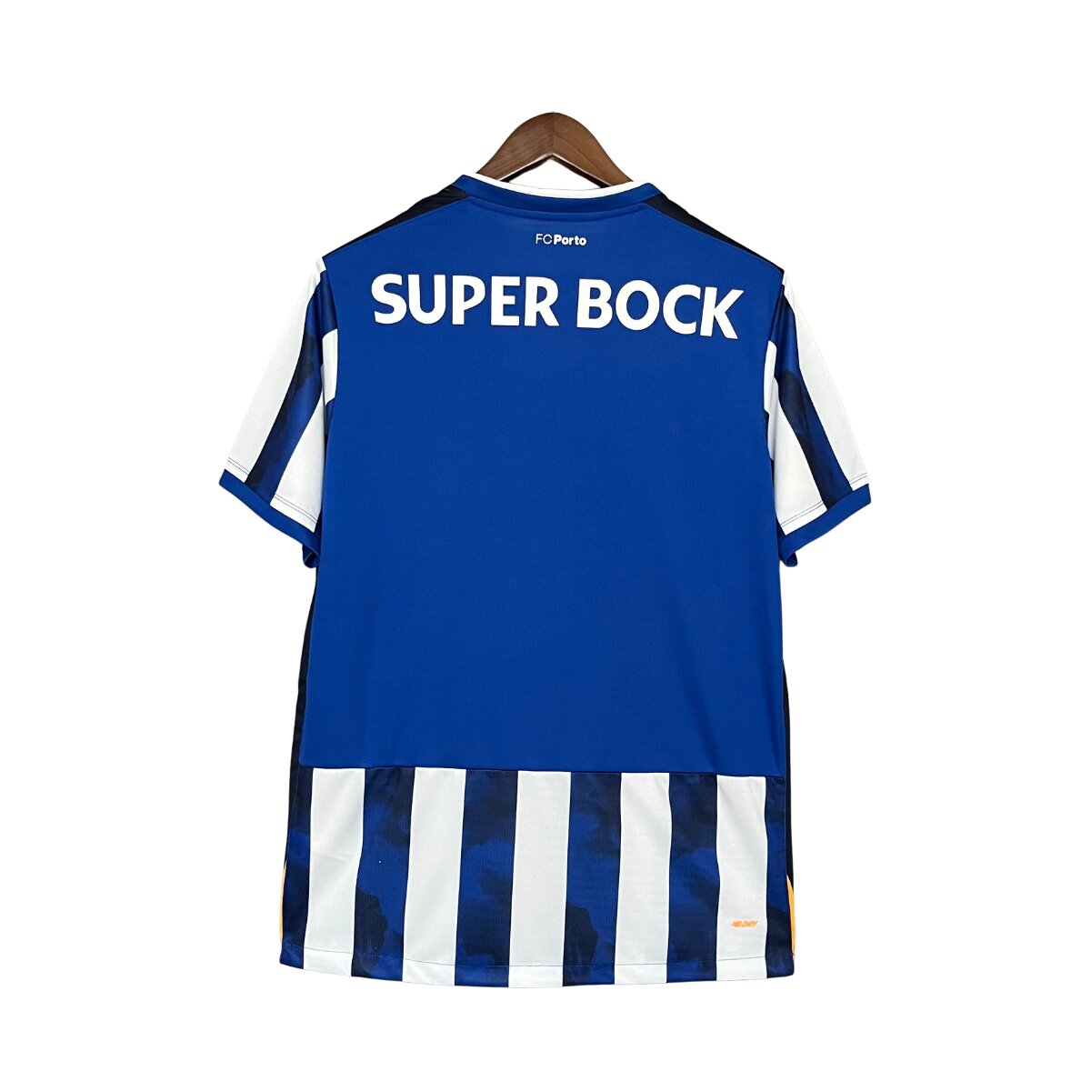 Nova Camisa Titular do FC Porto. Tradição e Paixão com Estilo Único. A nova camisa titular do FC Porto é uma verdadeira obra de arte para os torcedores apaixonados. Reimaginando o clássico, as listras azuis e brancas ganham um grafismo de fumaça, evocando a força do Dragão e a paixão vibrante das arquibancadas. A gola azul e branca, junto aos punhos azuis, adiciona um toque elegante, enquanto o logo New Balance em laranja traz modernidade ao manto. Listras estilizadas com grafismo de fumaça, simbolizando a intensidade do clube. Gola azul e branca, punhos azuis e escudo no lado do coração, mostrando a identidade dos Dragões.