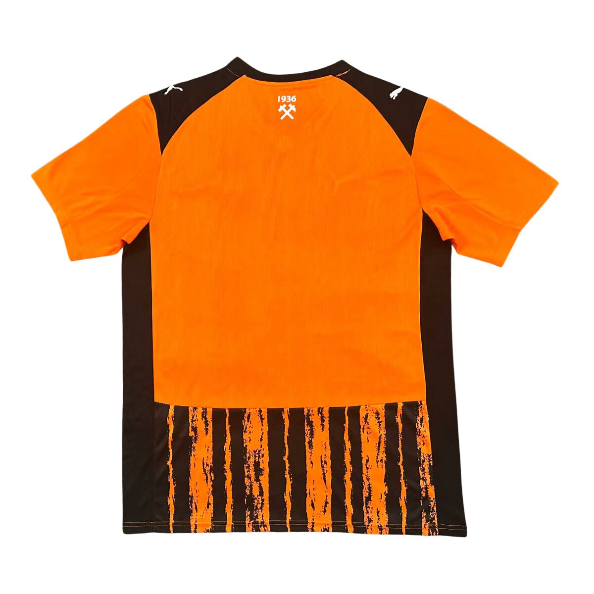 As costas ganham um grande box laranja para abrigar a numeração com mais destaque, enquanto a gola em formato V e os detalhes nos ombros aparecem em preto, criando um contraste elegante. O vértice frontal da gola é laranja, reforçando o equilíbrio do design. Ideal para torcedores apaixonados que não abrem mão de estilo e autenticidade, dentro e fora dos estádios.