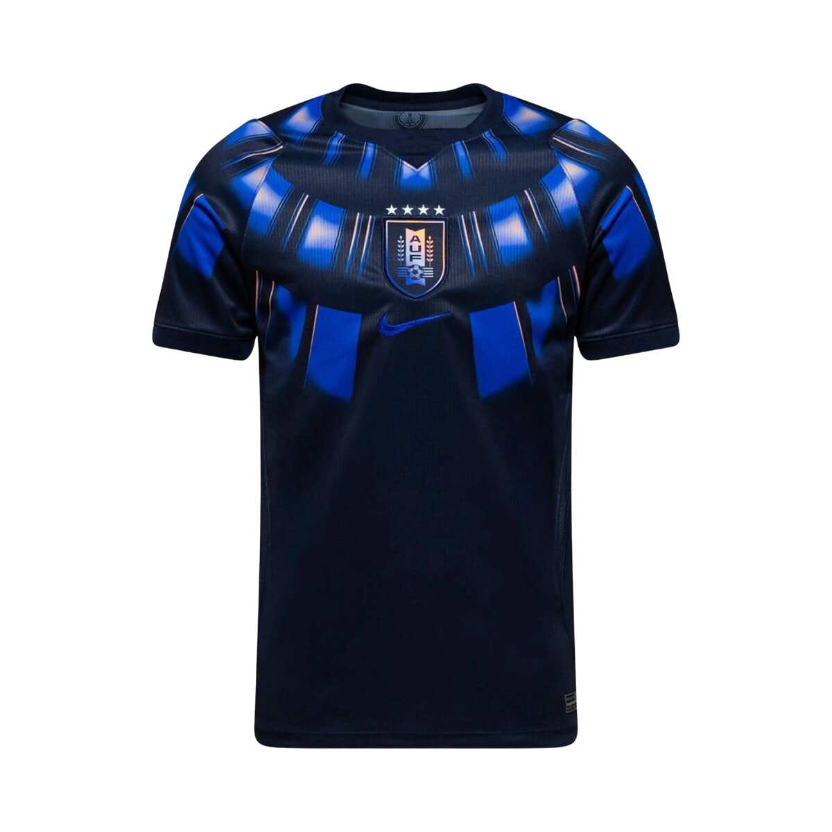 Esse conceito visual não é aleatório. As asas simbolizam ascensão, ambição e a mentalidade de uma seleção que nunca entra em campo para aceitar derrota. Cada variação de tom de azul dentro do padrão cria profundidade e sofisticação, transformando esse uniforme em uma peça que impressiona tanto de longe quanto nos detalhes mais próximos.