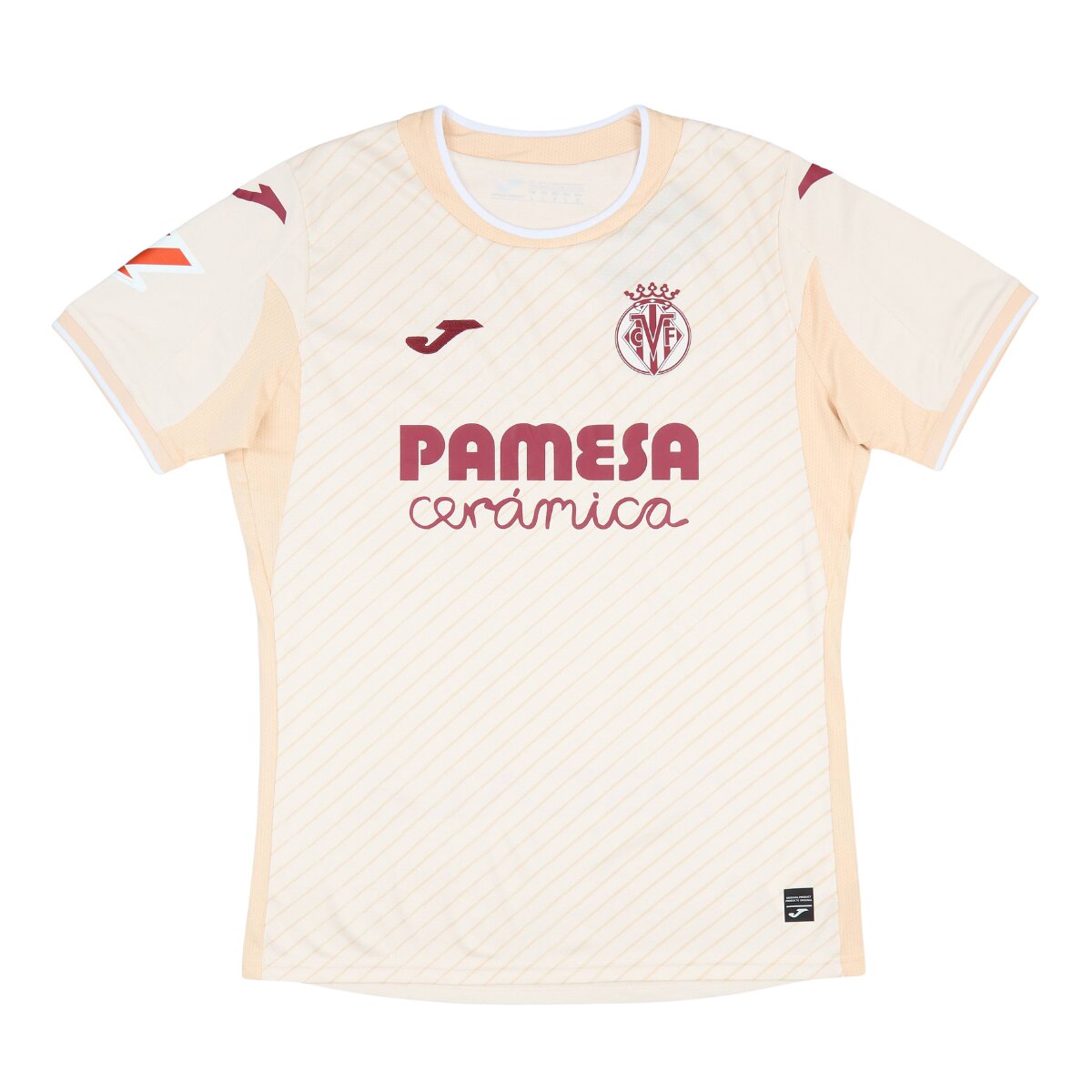 Nas costas, o detalhe especial fica por conta do losango com listras amarelas e vermelhas, uma referência direta ao brasão de armas da cidade de Villarreal, um símbolo de orgulho local e conexão com a comunidade valenciana.