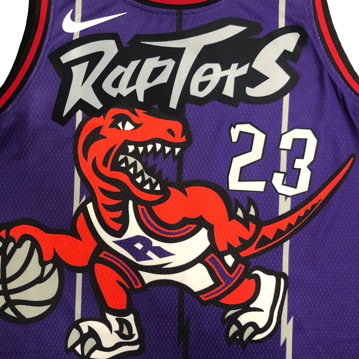 O design traz de volta o emblemático dinossauro roxo, símbolo da ousadia e identidade dos Raptors, agora com um acabamento moderno no modelo Swingman, oferecendo um caimento leve, confortável e fiel às peças usadas dentro das quadras.